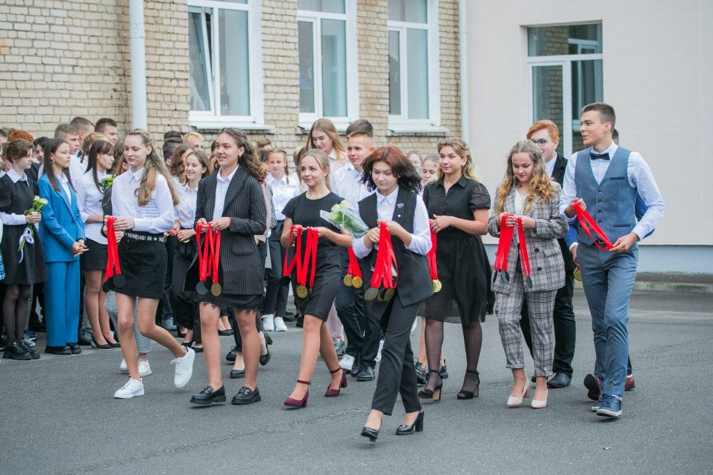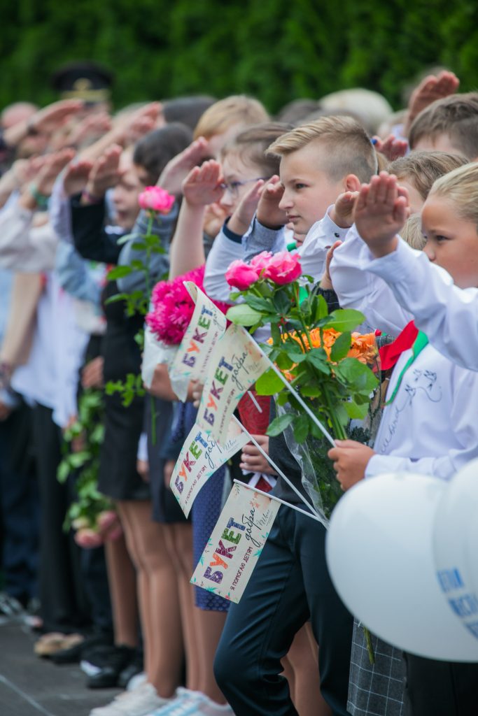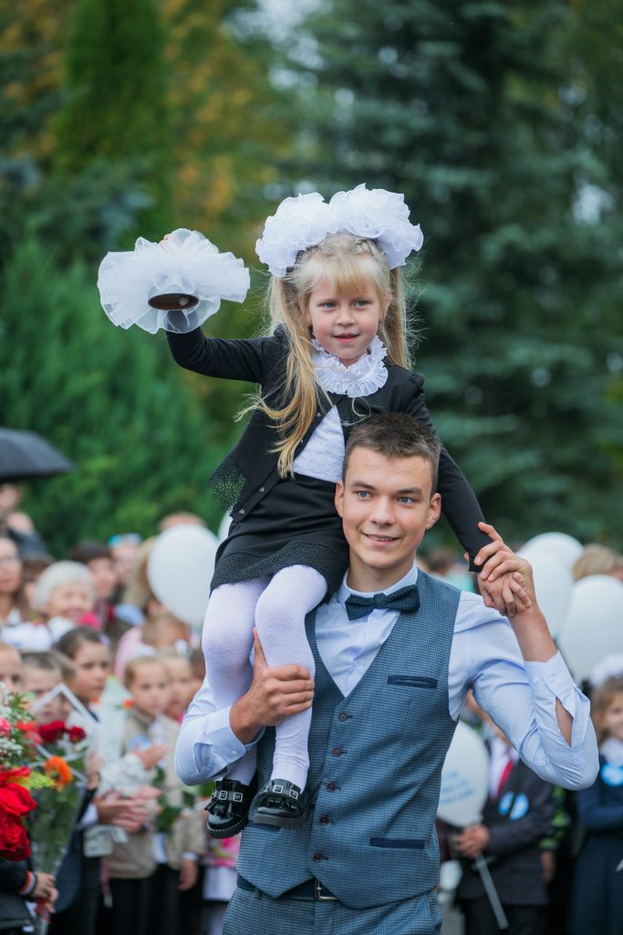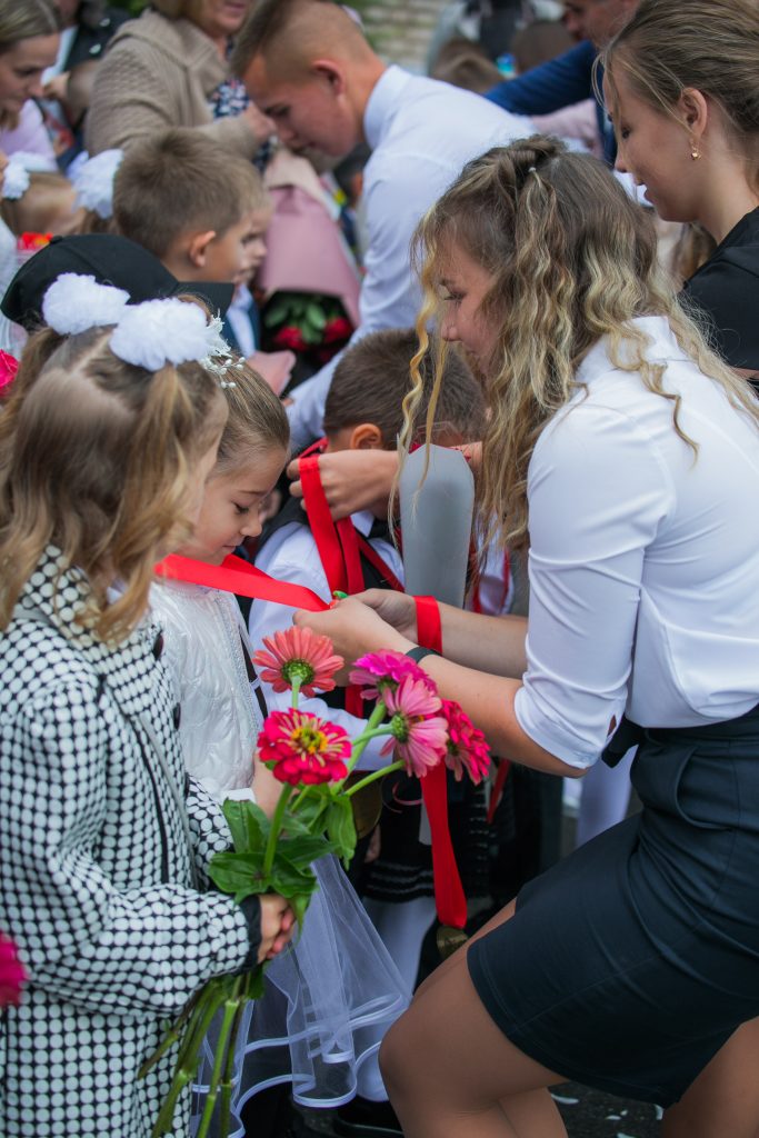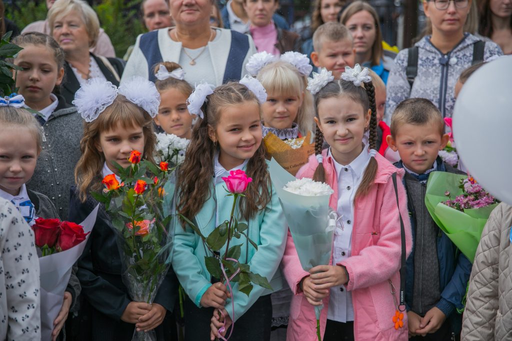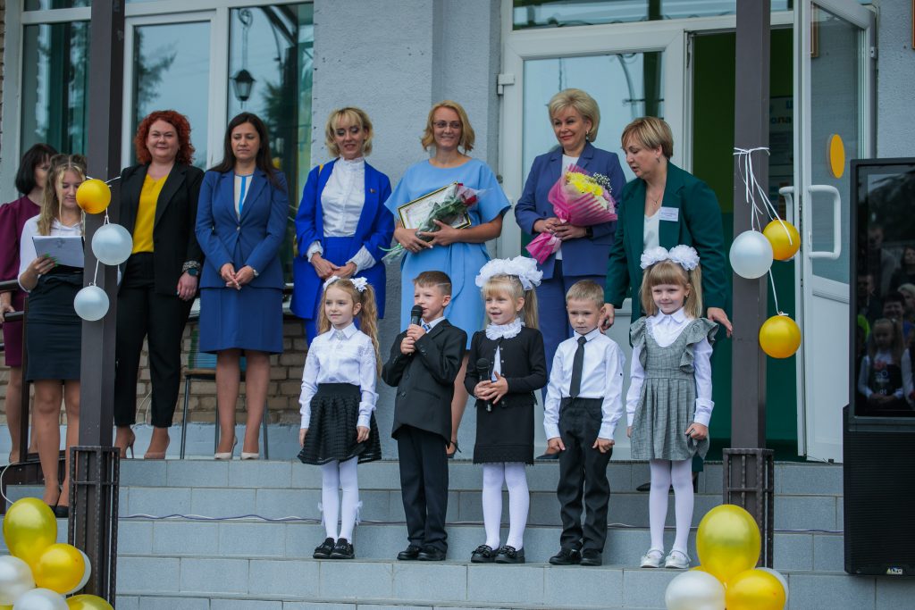 Кульминацией мероприятия стало торжественное поднятие флага старшеклассниками Анастасией Стрелковской и Артемом Сташевским. И, конечно же, прозвенел первый школьный звонок.