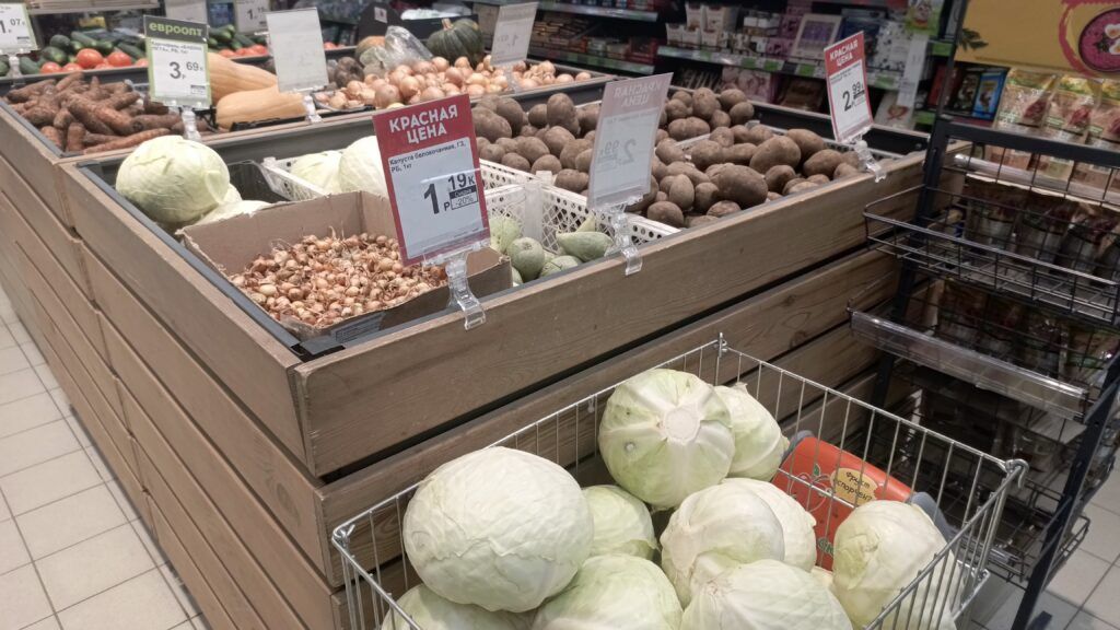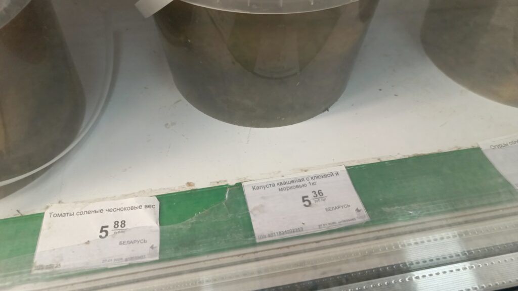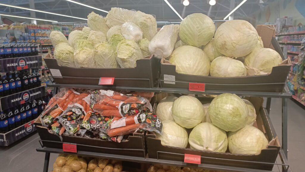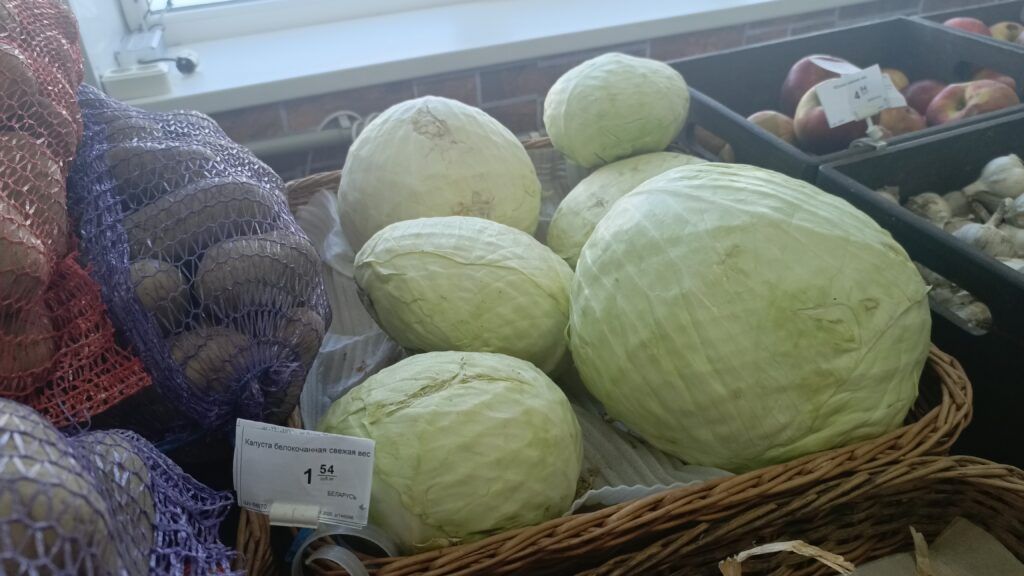 Чтобы посмотреть, сколько стоит свежая капуста и какой предлагают ассортимент квашенной, отправились по трем торговым точкам Узды. Заглянули в «Копееечку», «Евроопт» и магазин райпо.