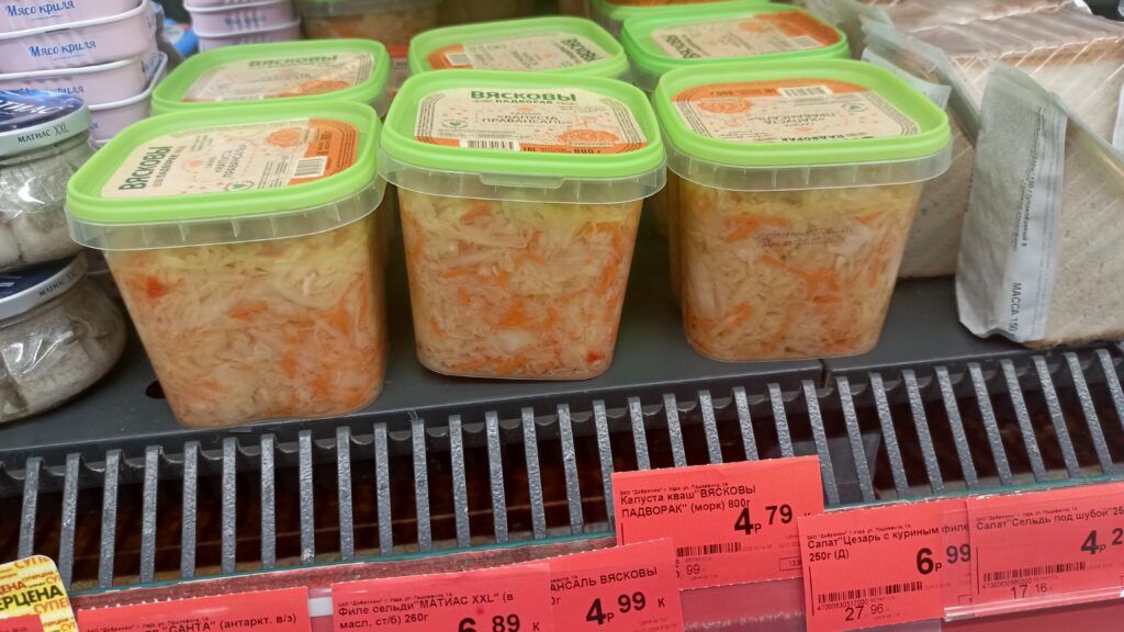 — квашенная с морковью и клюквой (800 г) – 4,99 рубля.