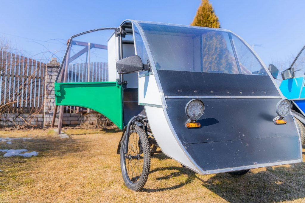 А потом увидела свет и третья модель. С массивными передними колесами от горного велосипеда, привлекательным сиденьем, электропечой, более мощными аккумуляторами. Этот веломобиль развивает скорость до 40-45 километров в час.