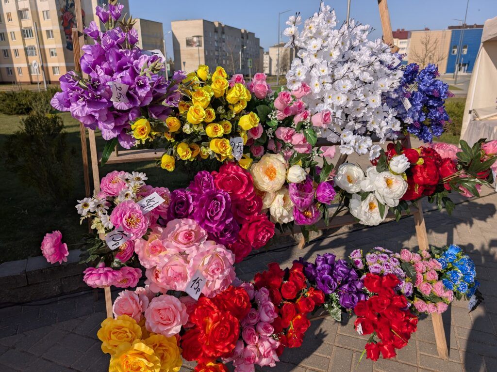 — Мы приехали из Бобруйска. В Узде мы до воскресенья, — говорит продавец Елена. – Утром спрос менее активный, надеемся, что к обеду ситуация измениться. Живая музыка и веселье должны привлечь местных жителей. Тем более, что в преддверии Радуницы, искусственные цветы набирают свою популярность. Ассортимент у нас большой, да и цены приятные.