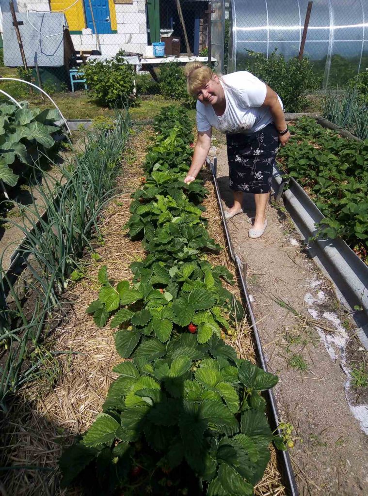 Особой гордостью хозяйки являются клубника. Почти каждая ягодка размером с куриное яйцо, а разные сорта позволяют лакомиться клубникой с июня по ноябрь.