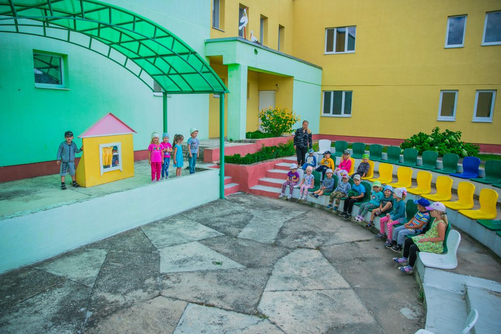 Заместитель заведующей детсадом Елена Лавышик рассказывает, что сделано во время подготовки к “Дожинкам” в дошкольном учреждении. Около семидесяти детишек приводят сюда родители, поэтому хочется, чтобы для маленьких жителей агрогородка было сделано все возможное. Об этом и позаботились в управлении по образованию, спорту и туризму райисполкома, агрокомплексе “Белая Русь” и сельисполкоме, который расположен под одной крышей с детским садиком. Появилось новое ограждение из аккуратных прутков-металлоконструкций. Новыми красками заиграл на солнце фасад. Сами сотрудники выполняли ремонт внутри здания — чистили, красили стены, пол, обновляли линолеум. Настоящая гордость заведения — оригинальный амфитеатр. Здесь можно настраивать для деток концерты, проводить другие мероприятия на свежем воздухе. Подобного нигде в районе, да и за его пределами не приходилось видеть. А недавно еще один любопытство появилось на территории садика. Своими силами обустроили небольшой уголок леса. Рядом с высаженными деревцами, кустами установлены вырезанные из фанеры и покрашенные лесные обитатели.