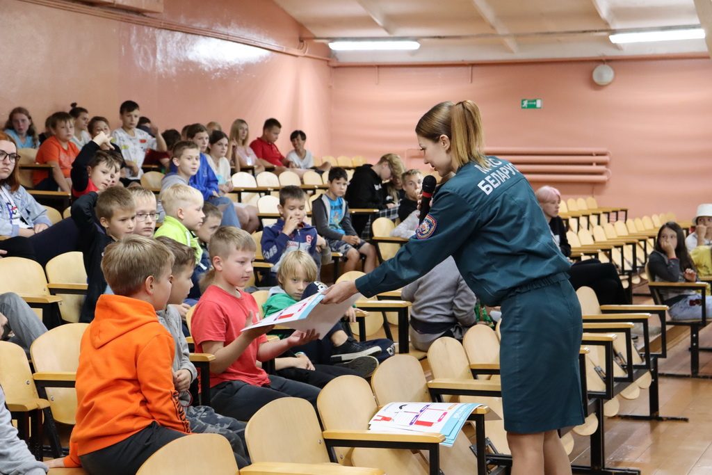 В рамках республиканской акции «Каникулы без дыма и огня» ребята из четвертой смены вместе со спасателями пополнили «копилки безопасности» во время тематической развлекательной программы, просмотра фильмов, игр и викторин. Рассмотрели различные аспекты правильного поведения на улице и дома, в лесу, на водоемах, вблизи строительных площадок и песчаных карьеров, научились делать безопасные селфи и «вызывать» экстренные службы, эвакуироваться во время пожара, оказывать первую помощь пострадавшему и пользоваться приложением МЧС Беларуси «Помощь рядом».