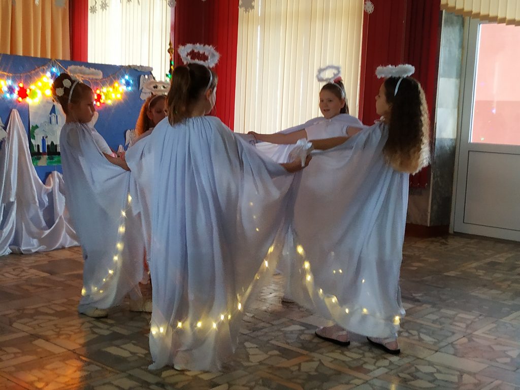 Маленькие артисты рассказали историю рождения Иисуса Христа, не забыли о волшебной рождественской звезде. Вспомнили и пастухов, которые увидели ангела и отправились поклониться Божьему младенцу.